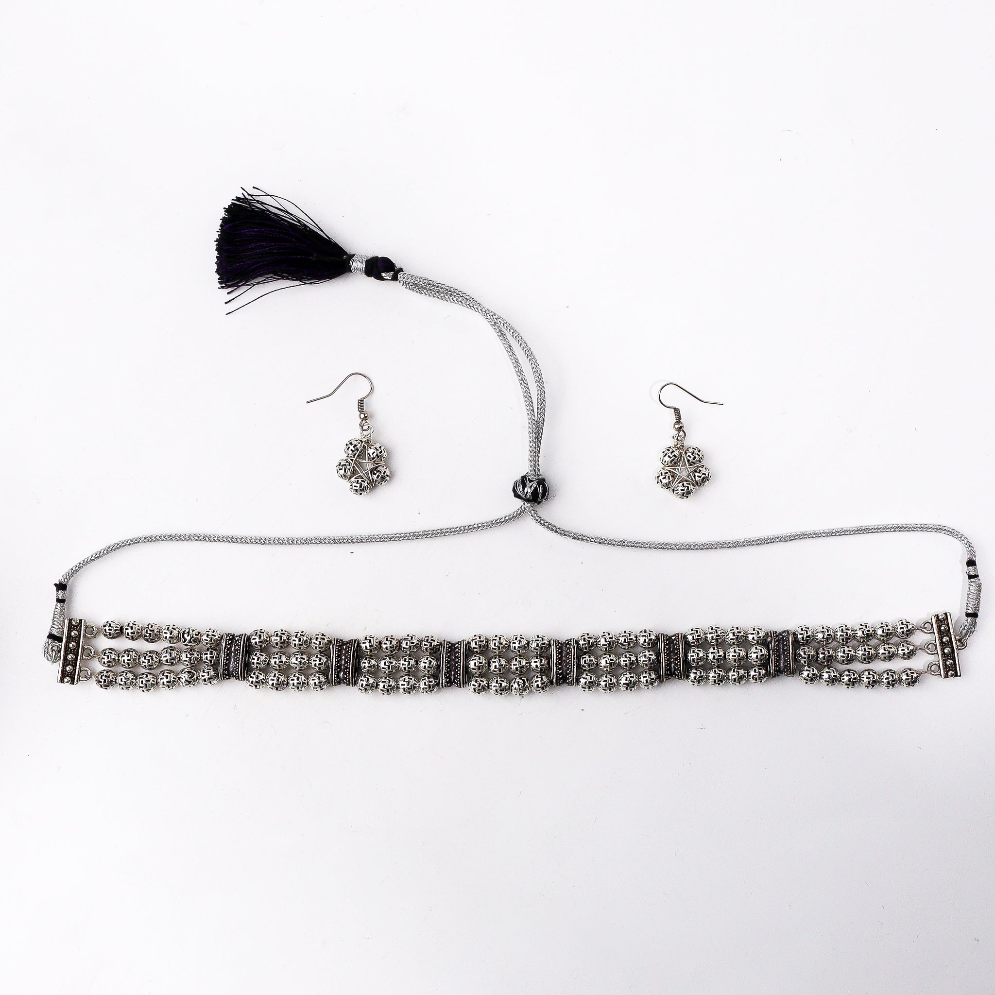 .Coordinated Fashion Design: A stylish necklace and earring set designed to offer a complete, well-balanced look.